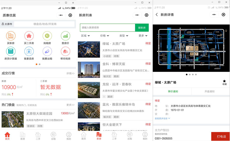 新優(yōu)居的智能化體現(xiàn)在方方面面,不同設(shè)備來(lái)訪問(wèn)網(wǎng)站前臺(tái)時(shí),自動(dòng)顯示與之最相適應(yīng)的界面。并將房產(chǎn)數(shù)據(jù)以電腦端+手機(jī)端+微信端+小程序+APP(開(kāi)發(fā)中)的不同形式