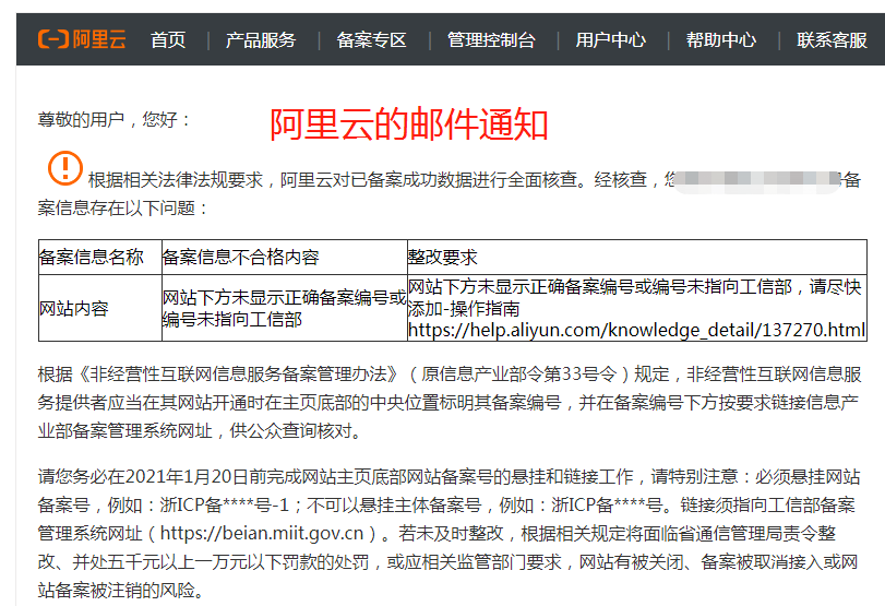 近期,很多用戶收到有關網(wǎng)站備案核查短信或郵件,提示用戶在網(wǎng)站下方未顯示正確備案編號或編號鏈接未指向工信部: