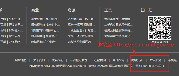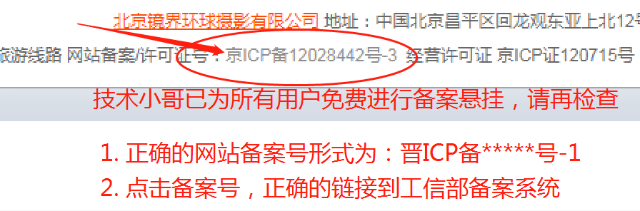 截至目前,宏微技術小哥已經(jīng)加班加點,為所有用戶免費進行了網(wǎng)站備案號懸掛和鏈接指向修改。因修改涉及客戶數(shù)量多,修改范圍廣(此前只要求懸掛主體單位備案號如晉ICP備****號),各家客戶采用的網(wǎng)站系統(tǒng)和數(shù)據(jù)形式不同,雖反復檢查,仍唯恐遺漏,所以請廣大網(wǎng)站備案用戶務必在電腦端打開網(wǎng)站,查看首頁底部的網(wǎng)站備案號是否為“晉ICP備****號-1”形式,并測試點擊備案號可以打開工信部備案系統(tǒng)https://beian.miit.gov.cn,如出現(xiàn)遺漏或鏈接無法打開,請速速與我們聯(lián)系,避免被處罰或取消接入等風險。
