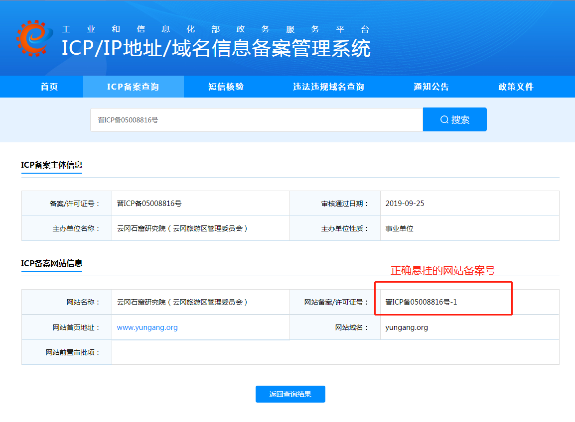 根據(jù)國家規(guī)定和管理要求,各網(wǎng)站主辦者在2021年1月20日(各接入商要求整改的時間不完全一致,大體在2021年1月下旬)前完成網(wǎng)站主頁底部網(wǎng)站備案號的懸掛和鏈接工作,特別提示:必須懸掛網(wǎng)站備案號,例如:晉ICP備****號-1;不可以懸掛主體備案號,例如:晉ICP備****號。鏈接須指向工信部備案管理系統(tǒng)網(wǎng)址(https://beian.miit.gov.cn)。若未及時整改,根據(jù)相關規(guī)定將面臨省通信管理局責令整改、并處五千元以上一萬元以下罰款的處罰,或應相關監(jiān)管部門要求,網(wǎng)站有被關閉、備案被取消接入或網(wǎng)站備案被注銷的風險。