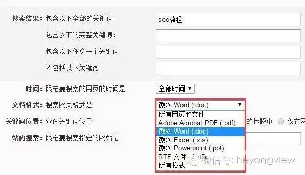 格式:filetype:文檔類型 關鍵詞,如“filetype:pdf seo”,能夠幫助我們快速篩選出和seo有關的pdf文檔;