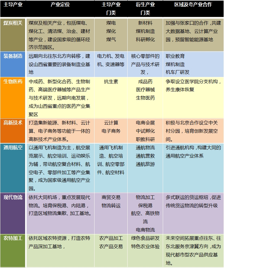 根據(jù)本次規(guī)劃的產(chǎn)業(yè)專題報告的相關(guān)分析,結(jié)合大同市“十三五”規(guī)劃確定了大同市的七大主導(dǎo)產(chǎn)業(yè),包括: